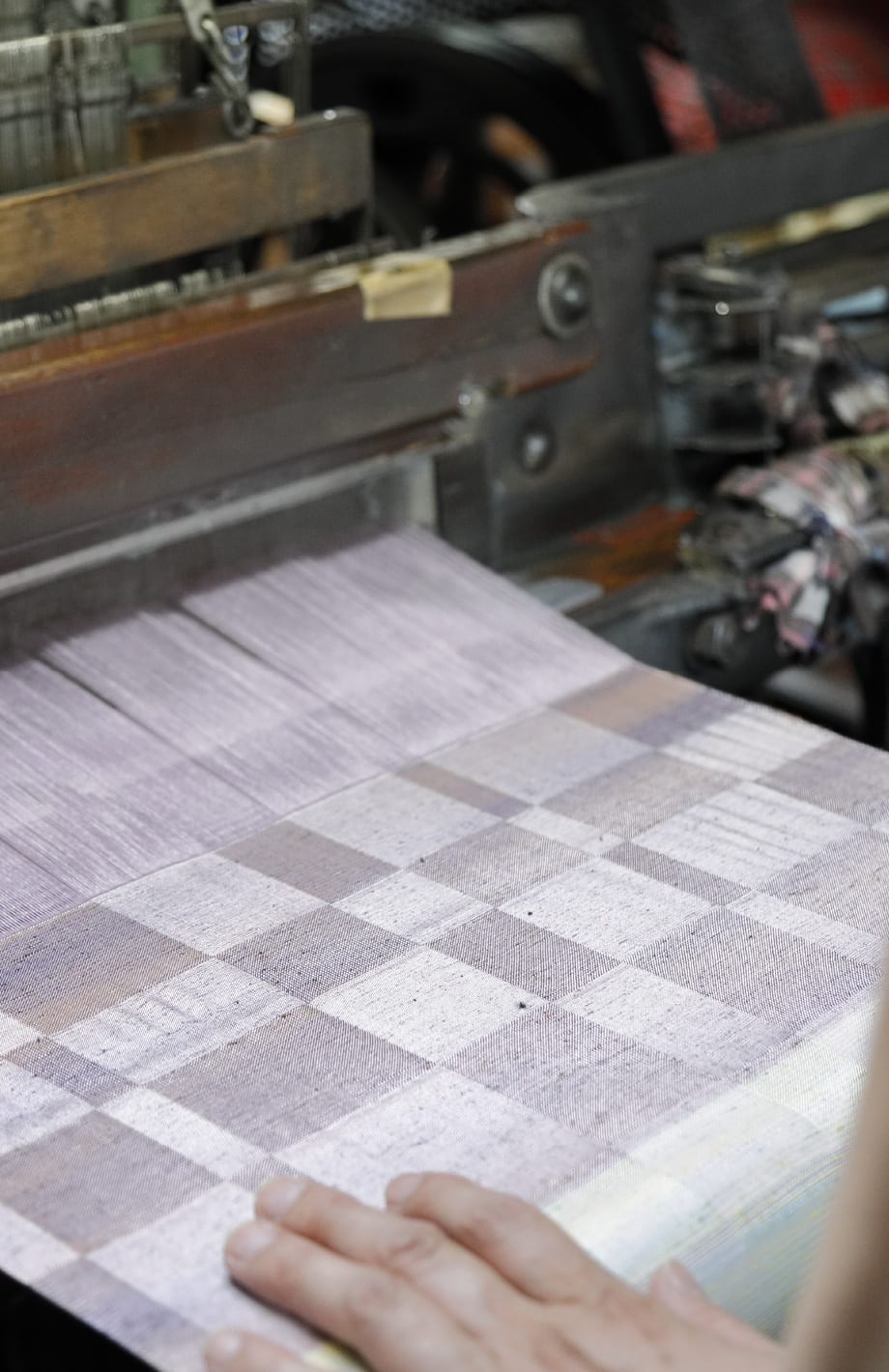 24個の「篭」を使用して絞り染色した、緻密かつモダンな柄行きが特徴の紅泥篭染絞り着尺や、真綿トップ染で織り上げた後、二枚の板で締めて染色。「和モダンテイスト」の全通名古屋帯である九寸名古屋帯「木漏れ日」は非常に多くの方にご好評いただいております。